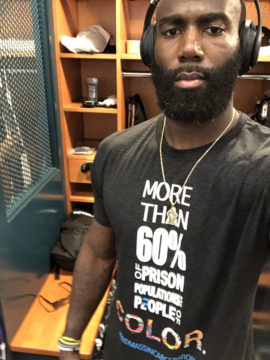 The first NFL games kick off today, I want to show my continued support for the players & their decision to stand against #socialinjustice. I thought about taking a new photo but was afraid I wouldn’t be able to get up this time @NFL @BostonGlobe @MSNBC @CNN #ThursdayThoughts