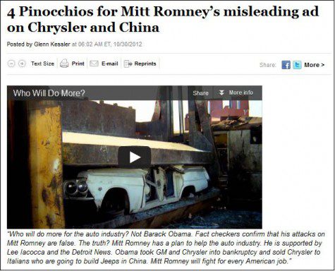 Despite the Obama Campaign’s lies about the Catholic Church and Mitt Romney not paying taxes, the left-wing Politifact made Romney’s Chrysler China ad their “Lie of the year.”