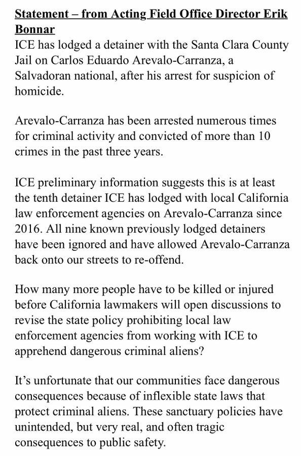 BREAKING: ICE statement on illegal alien suspect arrested for murdering 59 yr old Bambi Larson in San Jose. #FNR